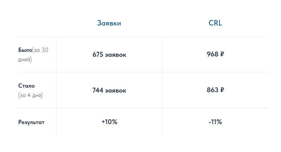 (14 дней с момента изменений) — Фактический результат от внесенных изменений оказался даже лучше прогнозируемого: Рост заявок оказался даже больше, чем мы рассчитывали внося так мало изменений, а стоимость привлечения одной заявки снизилась на 14% по аккаунту.