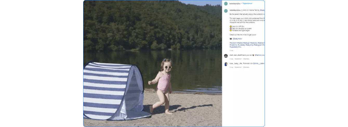 Устраивали профессиональные фотосессии с показом товаров на детях. Моделями стали малыши от 0 до 3-х лет. Фотографии получались живыми и непосредственными. Для контента вместо снимков одежды, разложенной на столе или висящей на вешалке, мы использовали фото счастливых семей и детей, что давало возможность показать товары в лучшем виде.