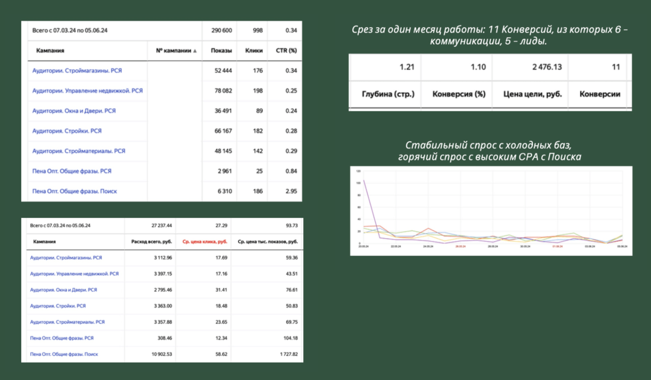 – Работаем с горячим спросом (Поисковая реклама). Благодаря грамотно посчитанной unit-экономике выживаем соки с низкочастотных запросов (вроде “монтажная пена оптом”).