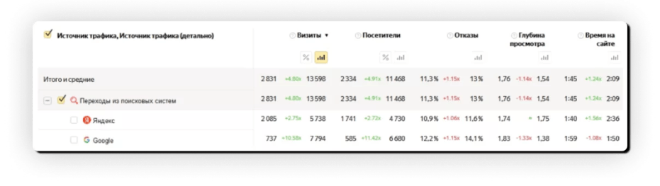 1 Увеличилось количество посещений на сайте из поисковых систем.