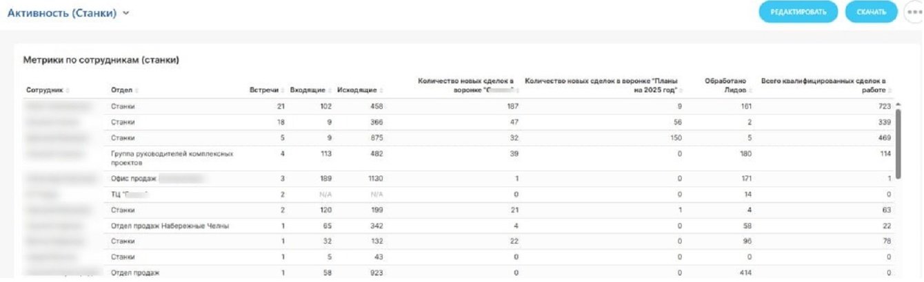 ▸ Появилась возможность оперативного сравнения показателей между подразделениями