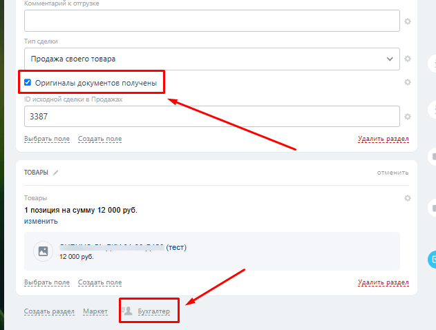 ▸ Возврат сделки на предыдущую стадию при отсутствии документов