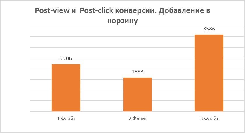 Post-click и post-view: 357 продаж, 3 586 добавлений в корзину.