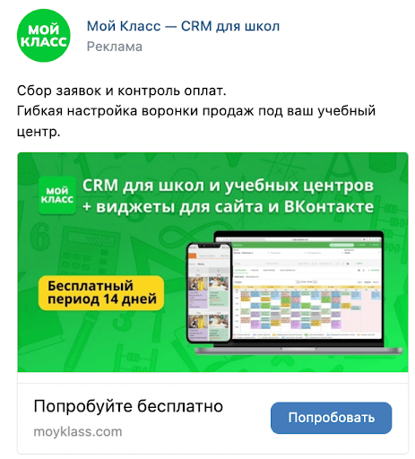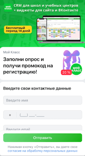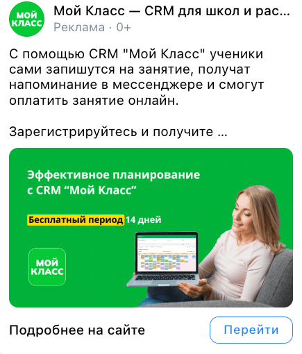 Мой Класс — это CRM-система для школ и детских центров и онлайн-расписание занятий для сайта и ВКонтакте. Система контролирует абонементы и посещения, считает зарплату, оповещает учеников и сотрудников принимает платежи онлайн.