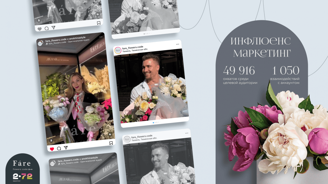 3. Инфлюенс маркетинг. Мы активно привлекали блогеров к обзорам салона и доставляли букеты домой.