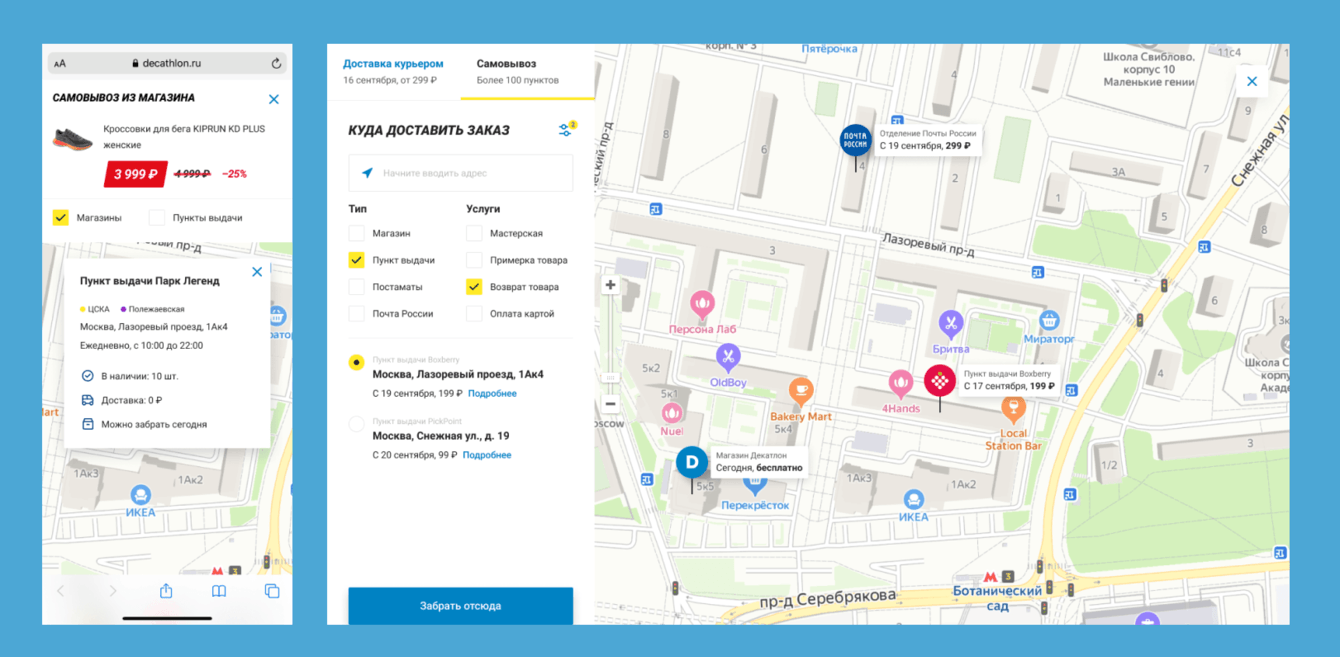 Еще один пример подобного решения — матрица доставки. Decathlon работает со многими курьерскими службами, но при этом у них всегда есть ограничения по расстоянию, габаритам, типу товаров. Плюс есть текущая загрузка — она постоянно меняется. Мы эффективно перенесли разработку Decathlon на российскую платформу — оно анализировало содержимое заказа, сопоставляло с геоданными пользователя и подбирало подходящие службы доставки.