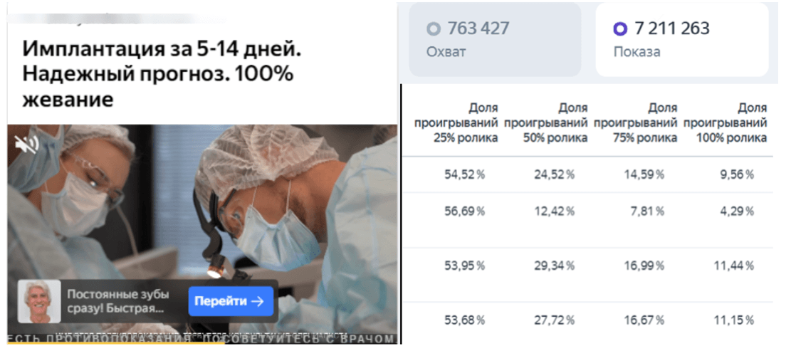 🤔Получили лиды. Но поняли, что снова уперлись в потолок трафика. Потому что ограничены геолокацией – Москва, конкурентов на рынке много, а пользователи недостаточно знают о базальном методе имплантации и не по понимают все его преимущества. Брендовых запросов почти не было, а креативы терялись среди потока других. Стратегия требовала изменения.