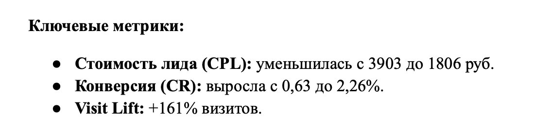 Помимо этого, благодаря комплексной стратегии, мы получили рост узнаваемости бренда и доверие пользователей. На рост конверсий также повлиял оптимизированный лендинг, отражающий все преимущества и не вызывающий сложности во взаимодействии.