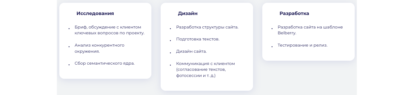 На каждой странице услуги схожая структура. Представлены следующие данные:
