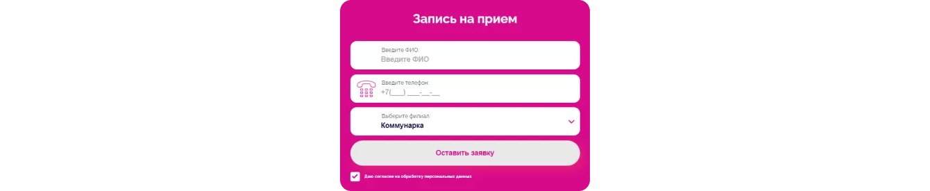 Пациент перейдёт на неё, кликнув на «Подробнее» на первом экране. Также здесь размещена лид-форма для быстрой записи на приём.