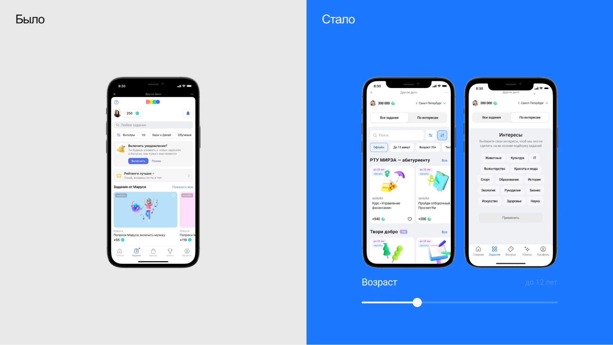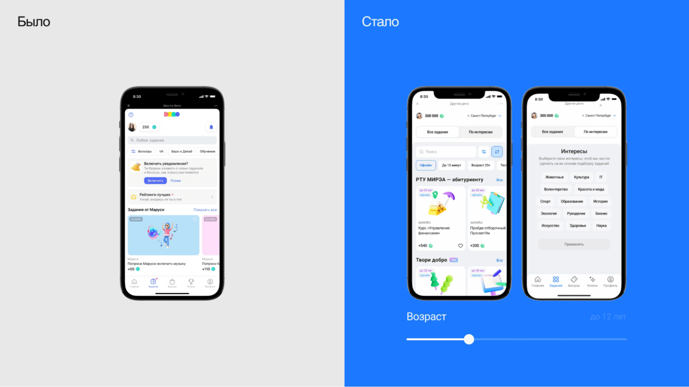 В фильтре заданий добавили ползунок, по которому пользователь может указать свой возраст, чтобы ему предлагались релевантные задания.