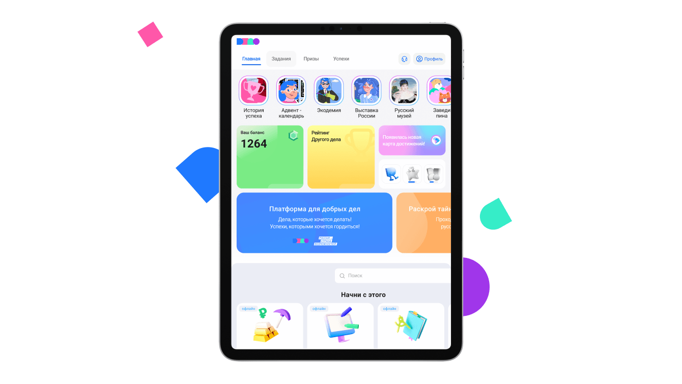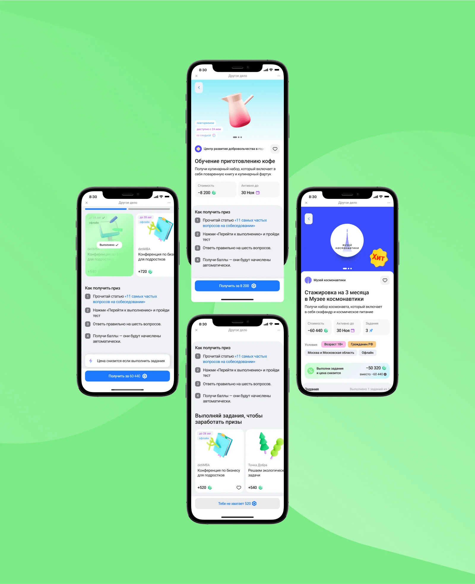 «Другое Дело» — сервис во ВКонтакте с полезными и развивающими заданиями в категориях: экология, спорт, искусство, волонтёрство и другие. За выполнение заданий пользователи получают баллы, которые можно обменять на мерч, подписки, стажировки и путешествия.