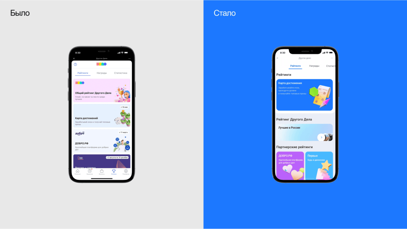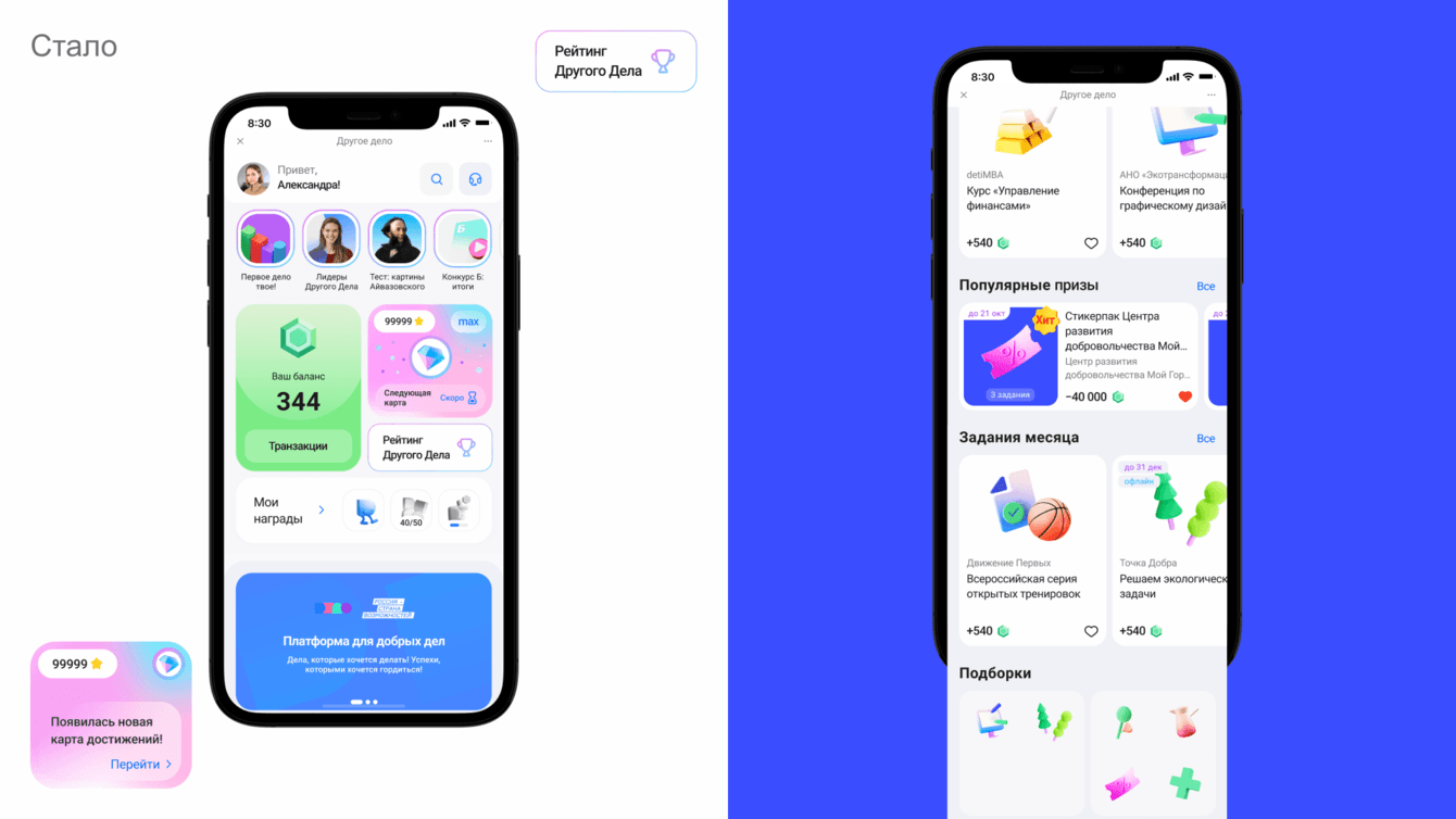 — Рейтинг «Другого Дела». Основной рейтинг приложения, где учитываются все накопленные баллы.