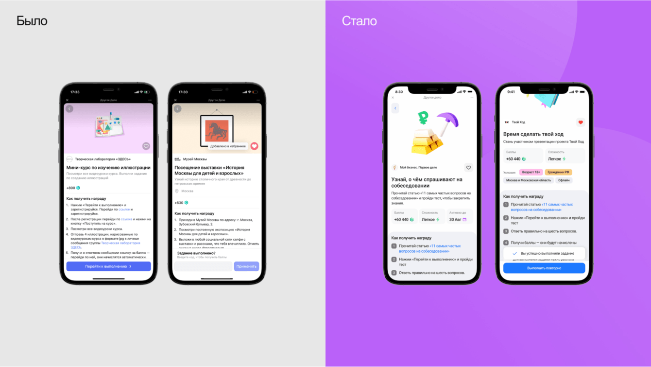 Обновления сделали приложение удобнее и понятнее для пользователей, увеличили вовлечённость и сократили время до открытия первого задания в два раза.