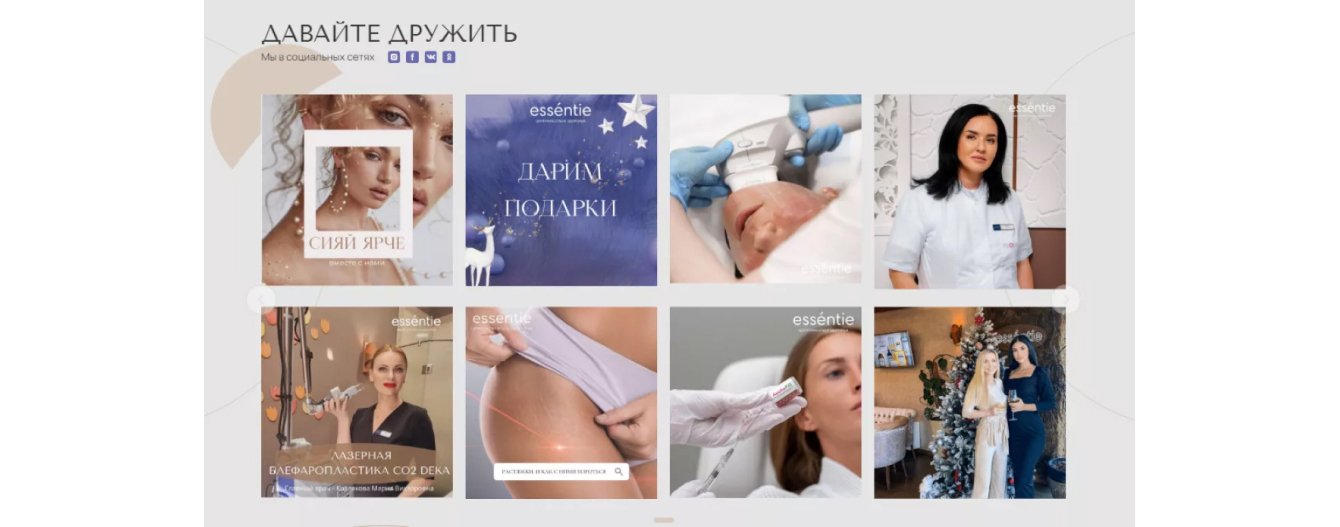 На сайте мы показали фото клиники и иконки соцсетей.