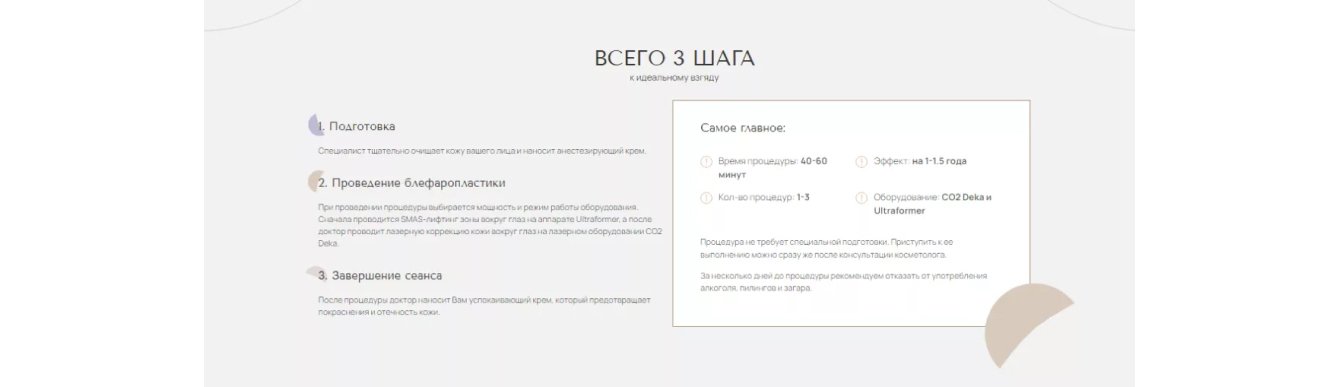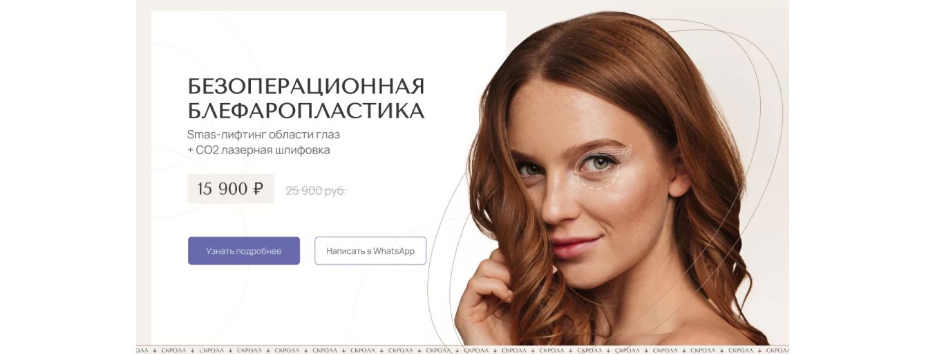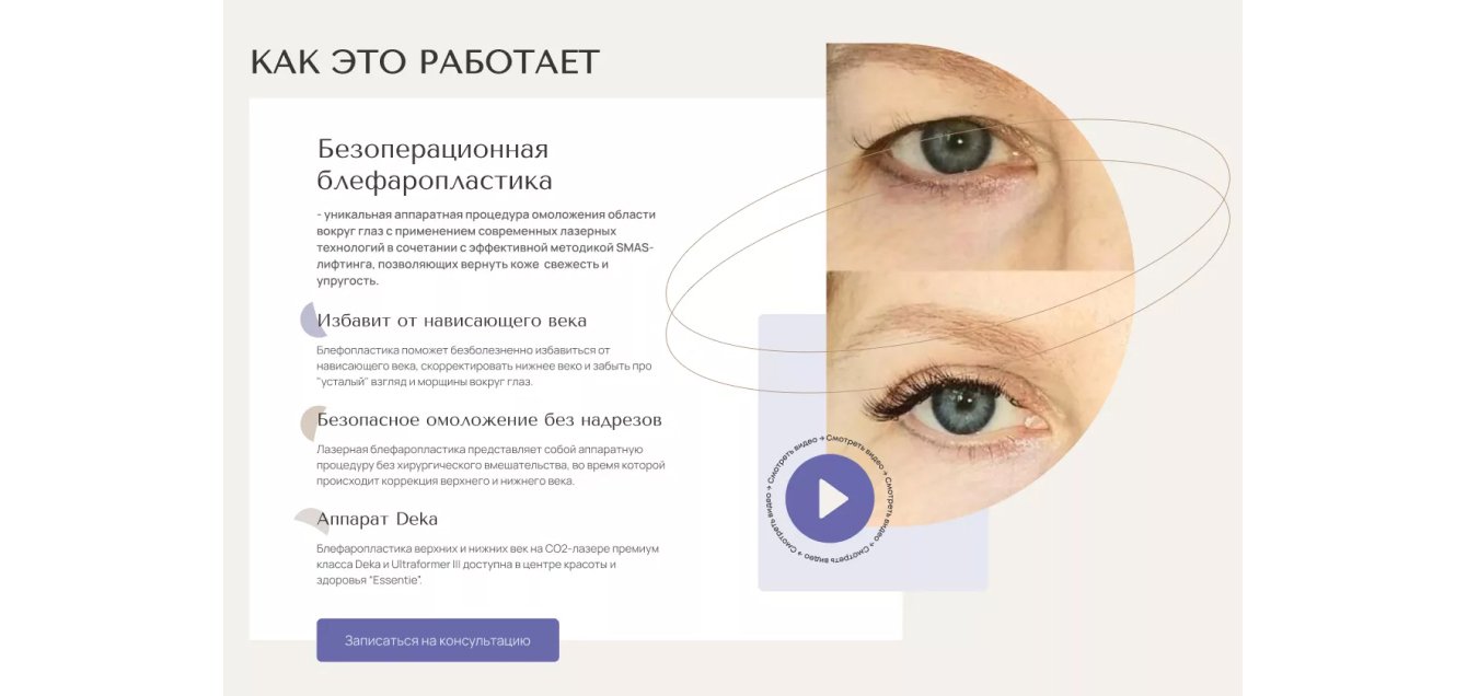 ● Не потеряет исходный лендинг по блефаропластике.
