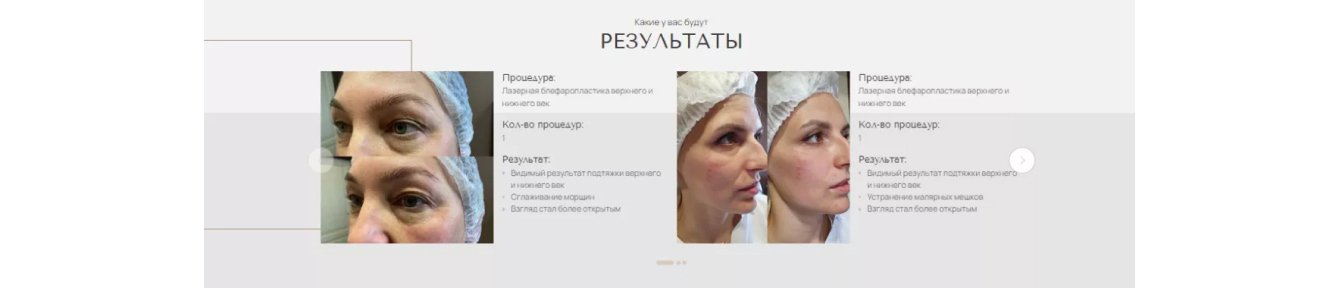 Это слайдер, в котором потенциальные пациенты могут переключать кейсы и видеть результат на разных людях.