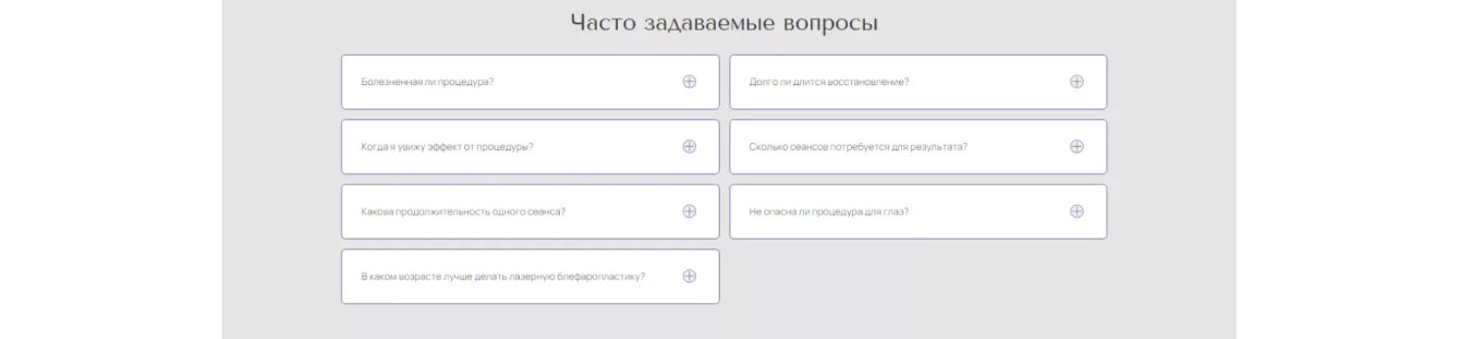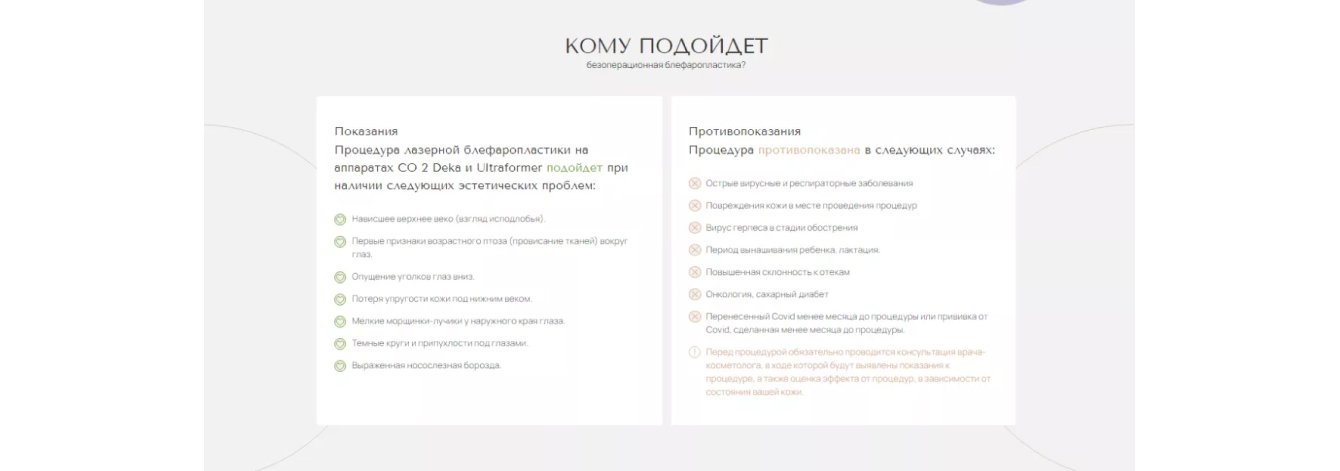 После чтения этого блока потенциальные пациенты понимают, сколько понадобится процедур, продолжительность одного сеанса, какое используется оборудование, как долго сохранится эффект и главное — как будет строиться их взаимодействие с клиникой.