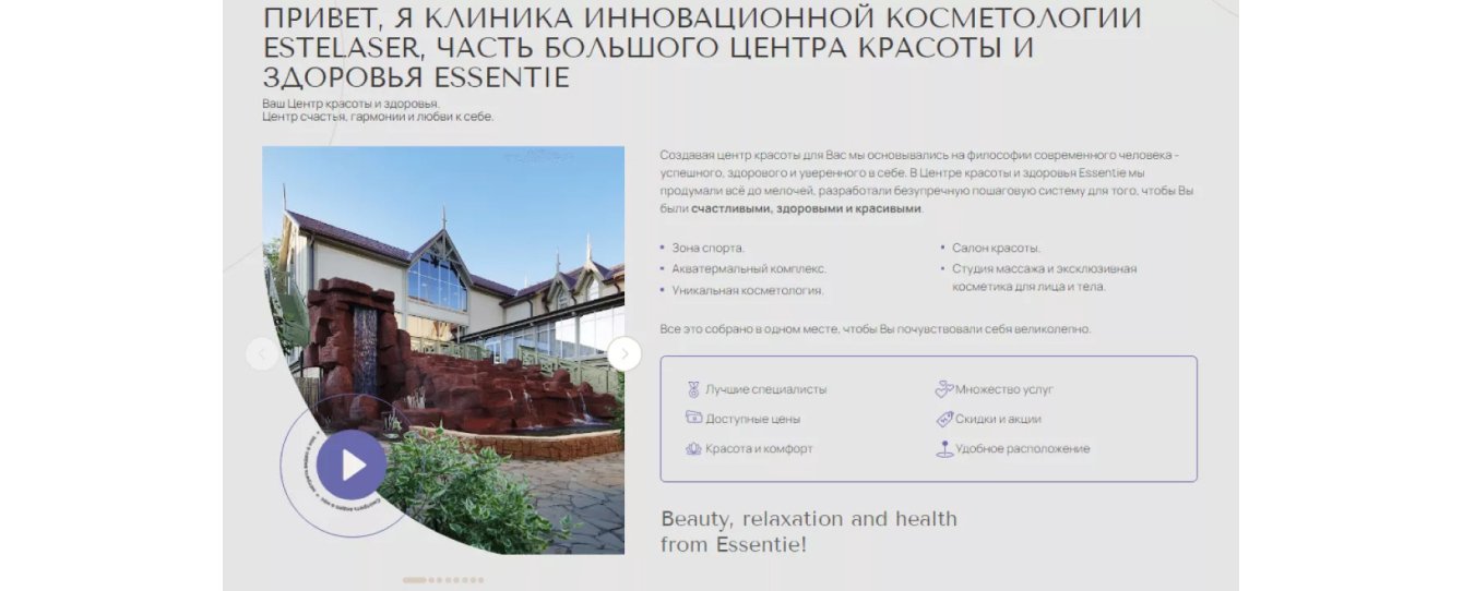 ESTELASER — клиника инновационной косметологии, часть большого центра красоты ESSENTIE. Ключевой услугой клиники является блефаропластика — процедура по удалению кожи в области верхних и нижних век. Клиент строит бизнес, ориентируясь на людей, которые хотят быть успешными, здоровыми и уверенными в себе, поэтому внимательно следят за своим внешним видом. Для трансляции этих ценностей и обращения к ЦА появилась идея сделать отдельный сайт под одну услугу.