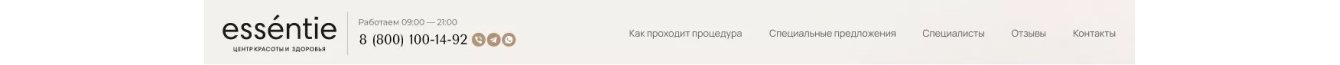 ● Якорные ссылки на ключевые рубрики: описание процедуры, специальные предложения для тех, кому важно наличие акций и подарков, презентация специалистов, отзывы клиентов и контакты.