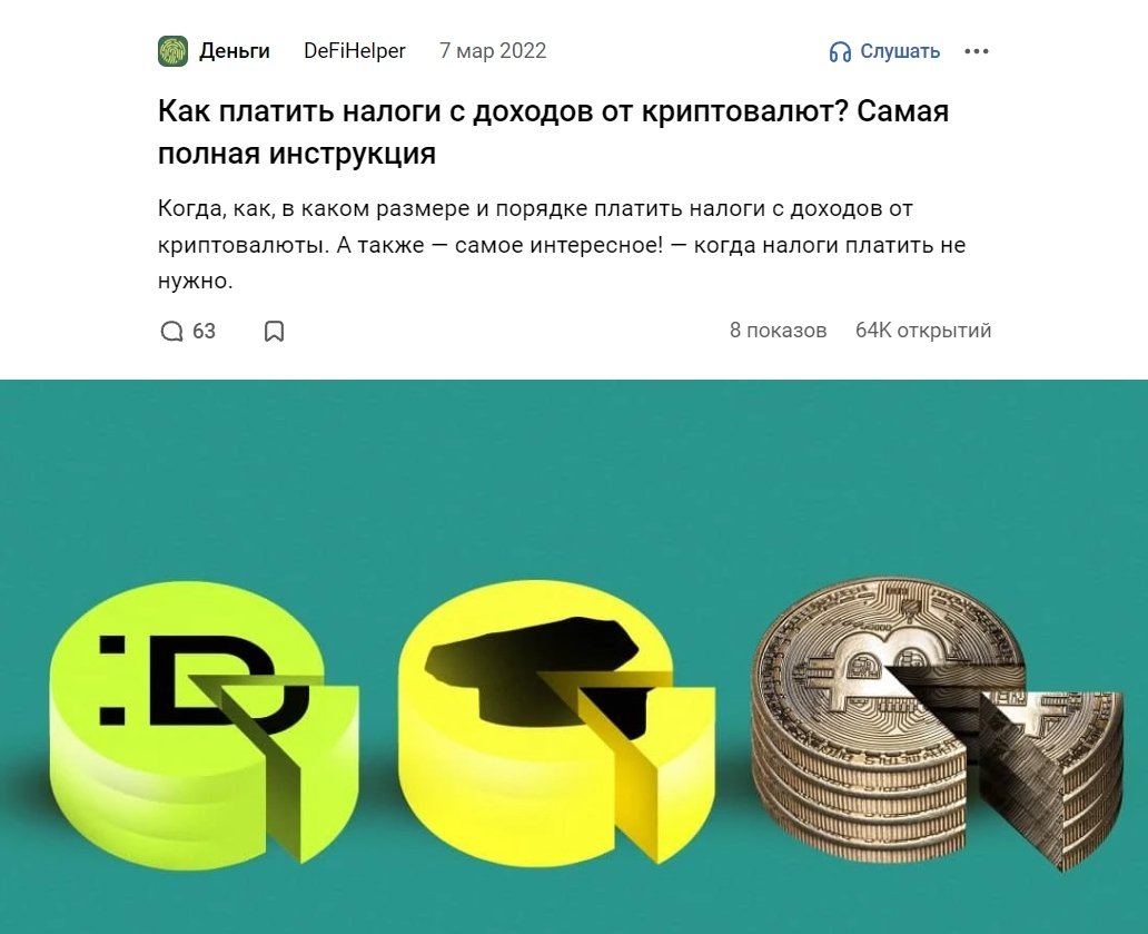 Весь наш контент можно было поделить примерно на две части: продуктовые посты и посты для привлечения новой аудитории. В продуктовых публикациях мы объясняли продукт и его преимущества. Статьи, нацеленные на расширение аудитории, могли быть про криптовалюты или смежные темы. Многие наши публикации набрали десятки тысяч просмотров и множество комментариев.