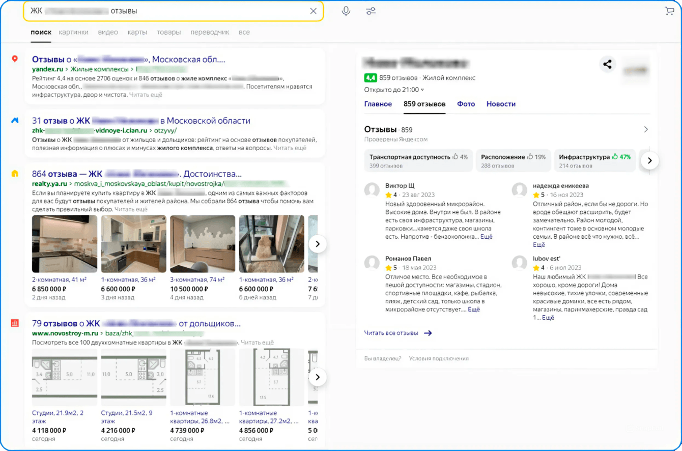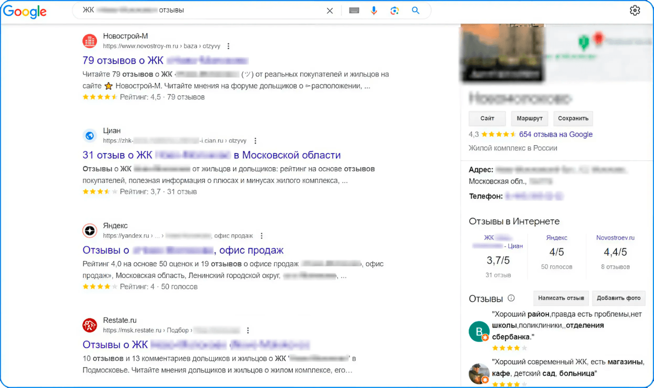 На начало работ информационные ресурсы и упоминания бренда комплекса отсутствовали в поисковой выдаче, соответственно, не было и мнений пользователей.