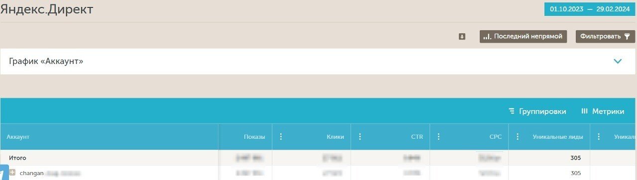 За период с октября по февраль нам уже удалось снизить стоимость лида на 31%, собрать 305 уникальных лидов, при том, что бюджет на рекламу в месяц оставался неизменным, и лишь в декабре 2023г. он вырос всего на 15% с целью подключения доп.инструмента.