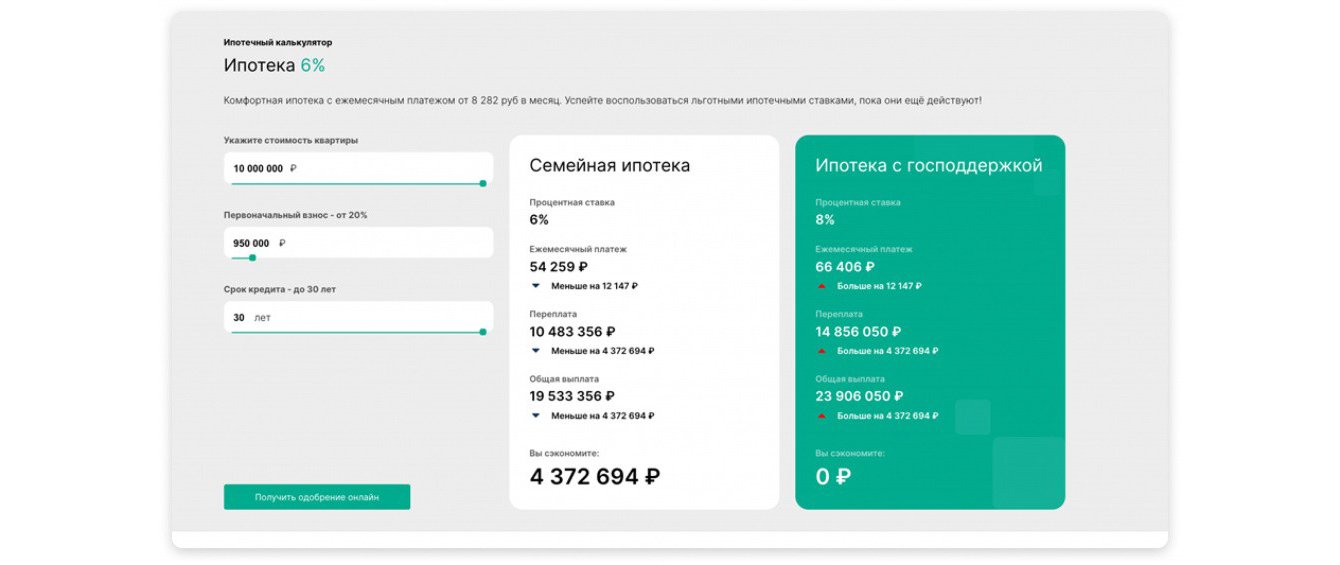 Бэкенд реализован следующим образом: от отдела продаж клиента мы получили таблицу, где было расписано, по какой ставке и при каких условиях рассчитывается ипотека. На базе этой таблицы наши программисты написали соответствующий код.