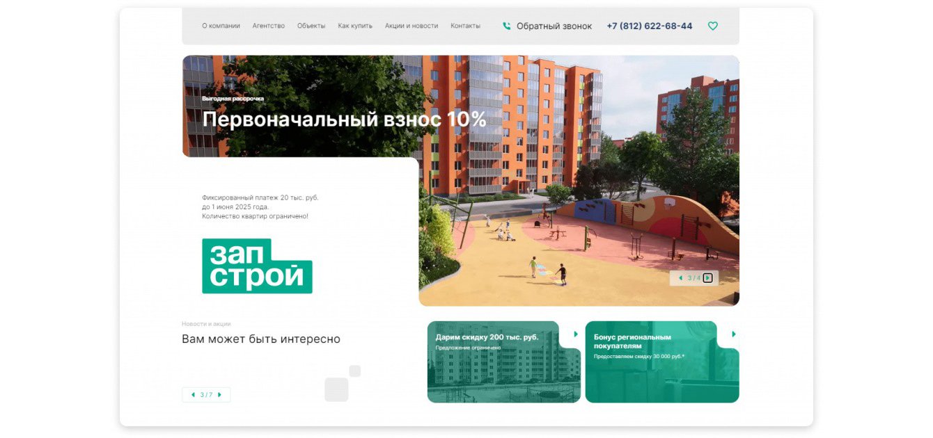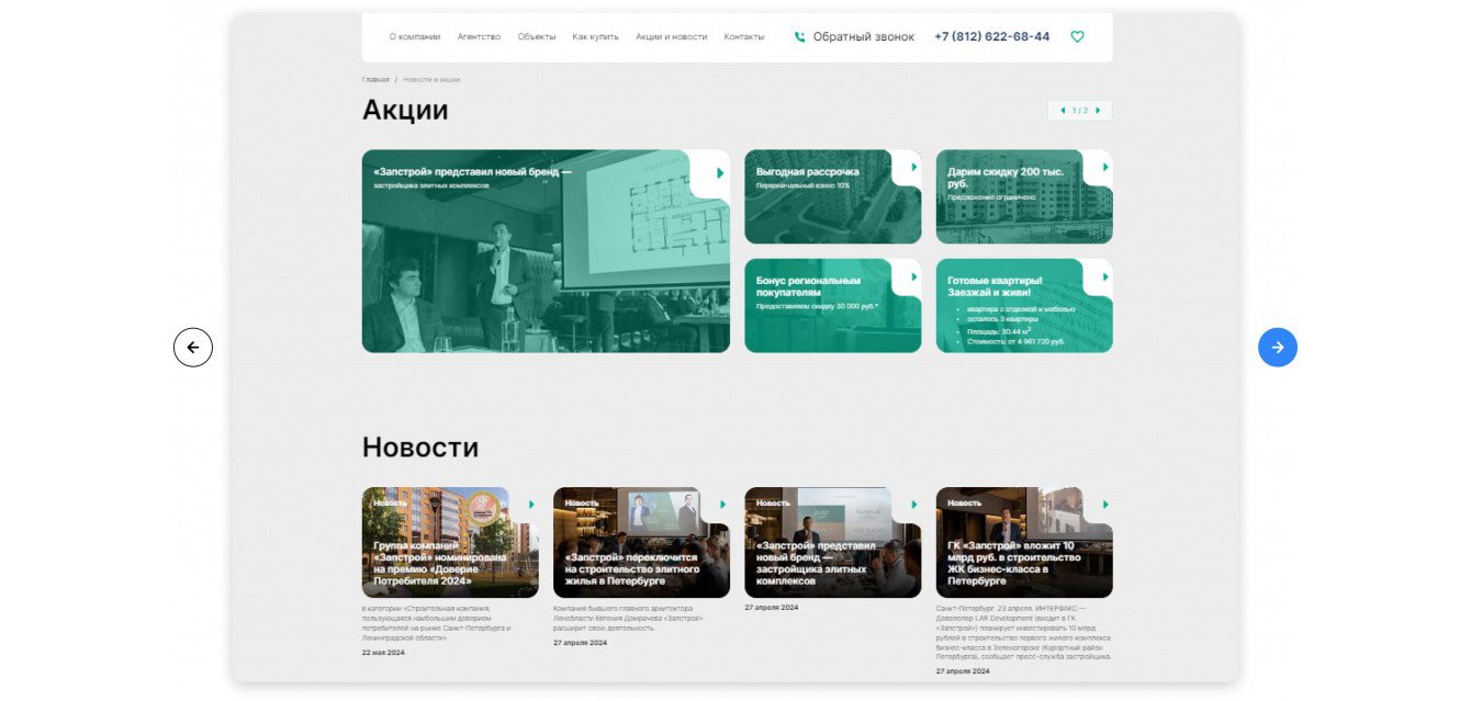 Мы разработали для ГК «Запстрой» современный сайт, отвечающий брендбуку и позиционированию компании, в содержание и структуру которого легко вносить изменения самостоятельно.