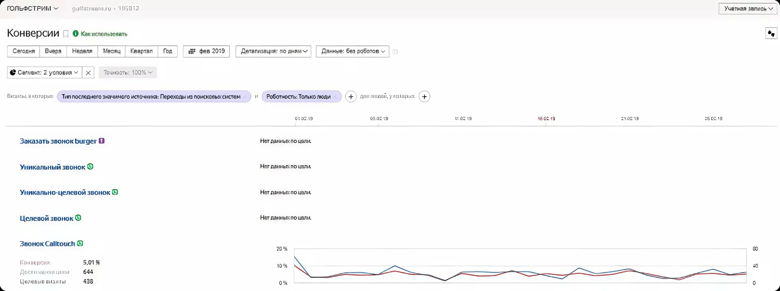 Данные по конверсиям сайта на начало работы — февраль 2019 года