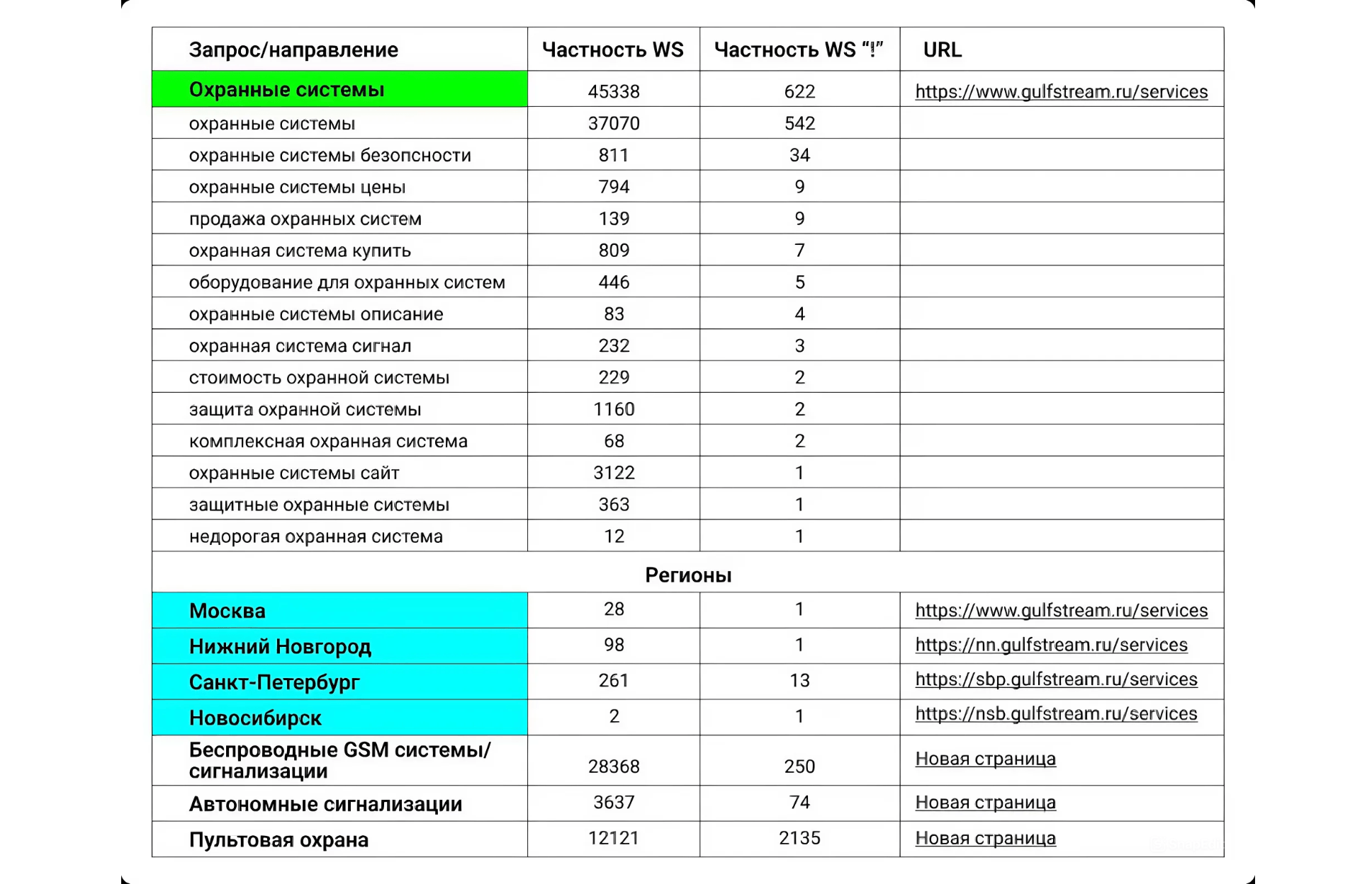 ● Анализ ниши охранных услуг. Мы подробно рассмотрели преимущества и недостатки ближайших конкурентов, а также отличия компании клиента;