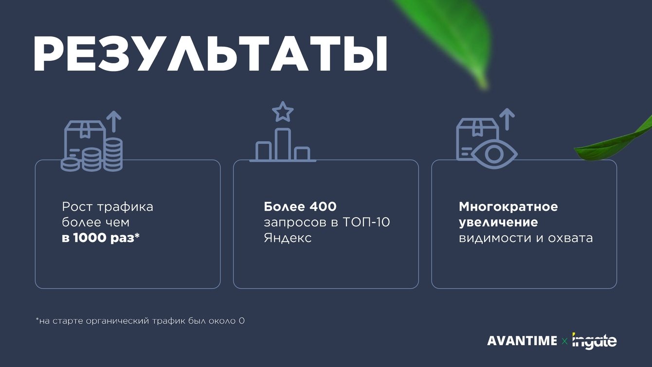 Несмотря на все сложности, которые были у проекта в начале работы, команда Ingate.Organic продемонстрировала профессионализм, скорость, заинтересованность и слаженность. Все это позволило добиться всех поставленных целей. Я надеюсь, что в будущем мы вместе достигнем еще более амбициозных результатов.