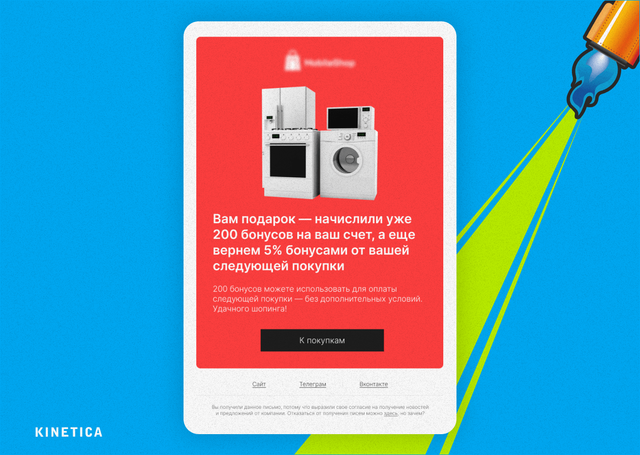 Важно: в будущем мы смогли найти несколько точек роста, которые значительно повышали буст в определенных аудиторных сегментах (например, люди, которые раз в несколько лет покупают новую модель iPhone — с ними мы начали работать ежегодно: оформляли письмо после презентации очередного продукта Apple и запускали реактивационные кампании с предложением приобрести сопутствующие товары).