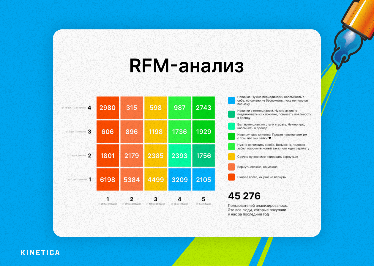 Итак, первый шаг — внедрение RFM-анализа (recency, frequency, monetary value), чтобы сегментировать аудиторию по трем ключевым критериям: как давно покупатель совершал покупки, как часто он покупает и на какую сумму. Этот метод позволил выделить группы с высоким, средним и низким приоритетом и адаптировать коммуникации под каждую из них.