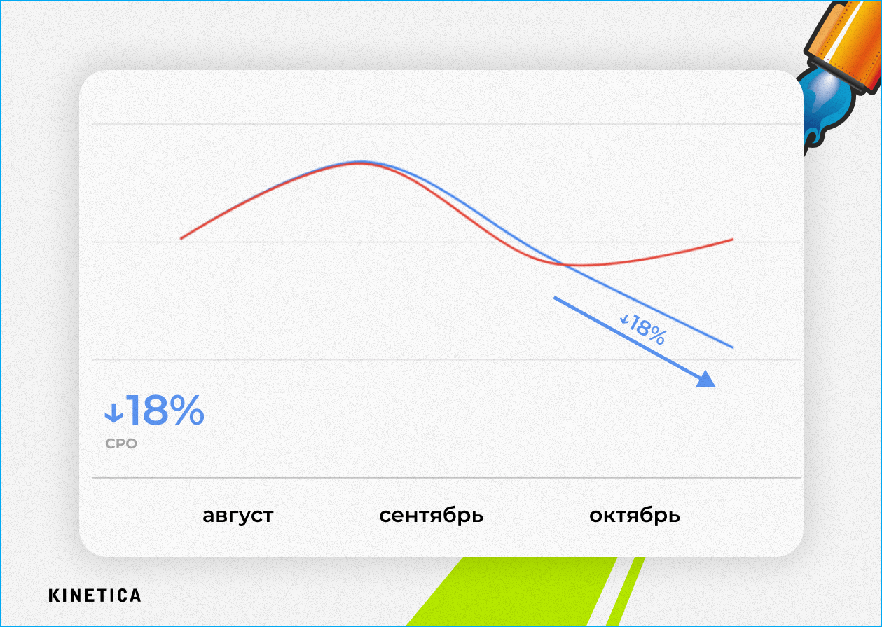 Использование ретаргетинга принесло отличные результаты: CPO оказался на 18% ниже в сравнении с аудиторией, которая ранее не посещала сайт.