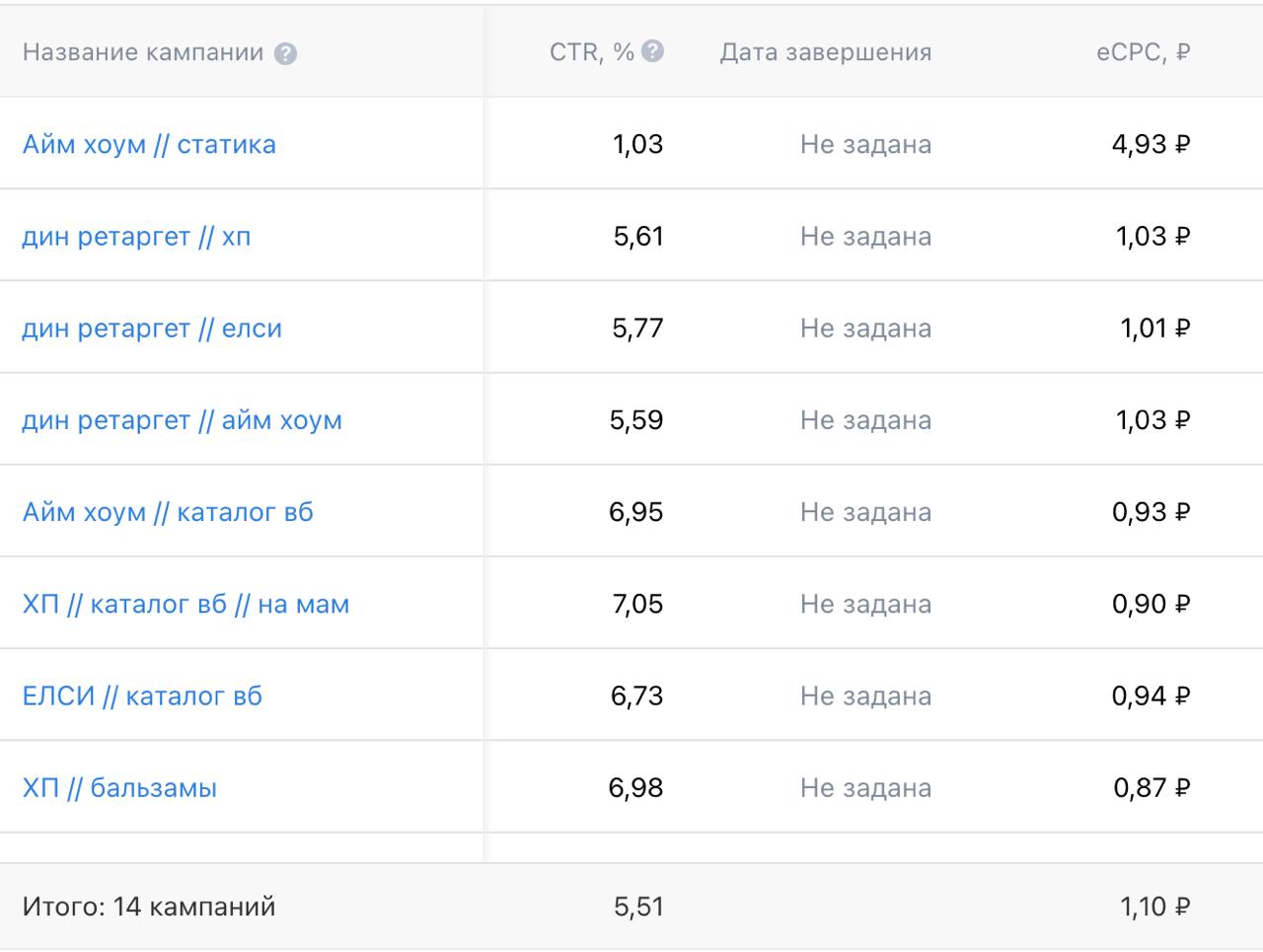 – Протестировали разные категории аудитории и отобрали те, где СРМ (стоимость за 1000 показов) ниже всего и при этом сохраняется высокий CTR.