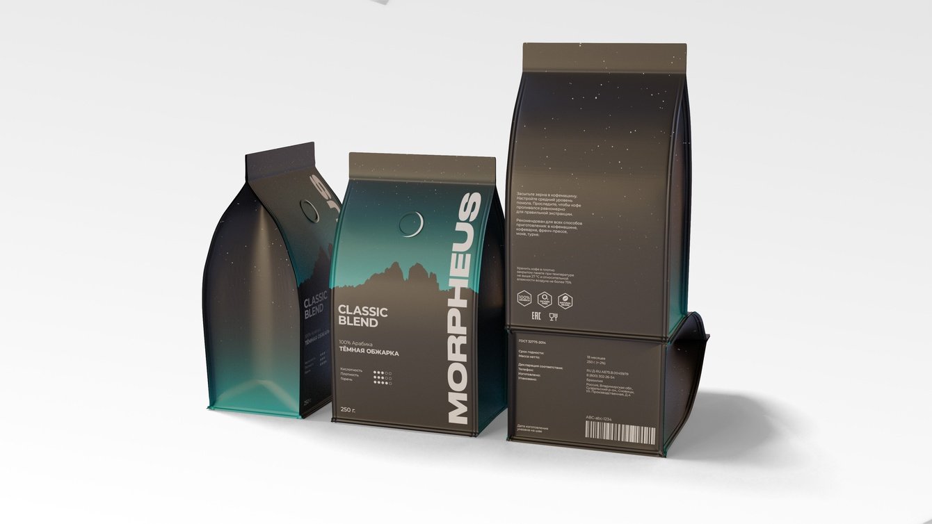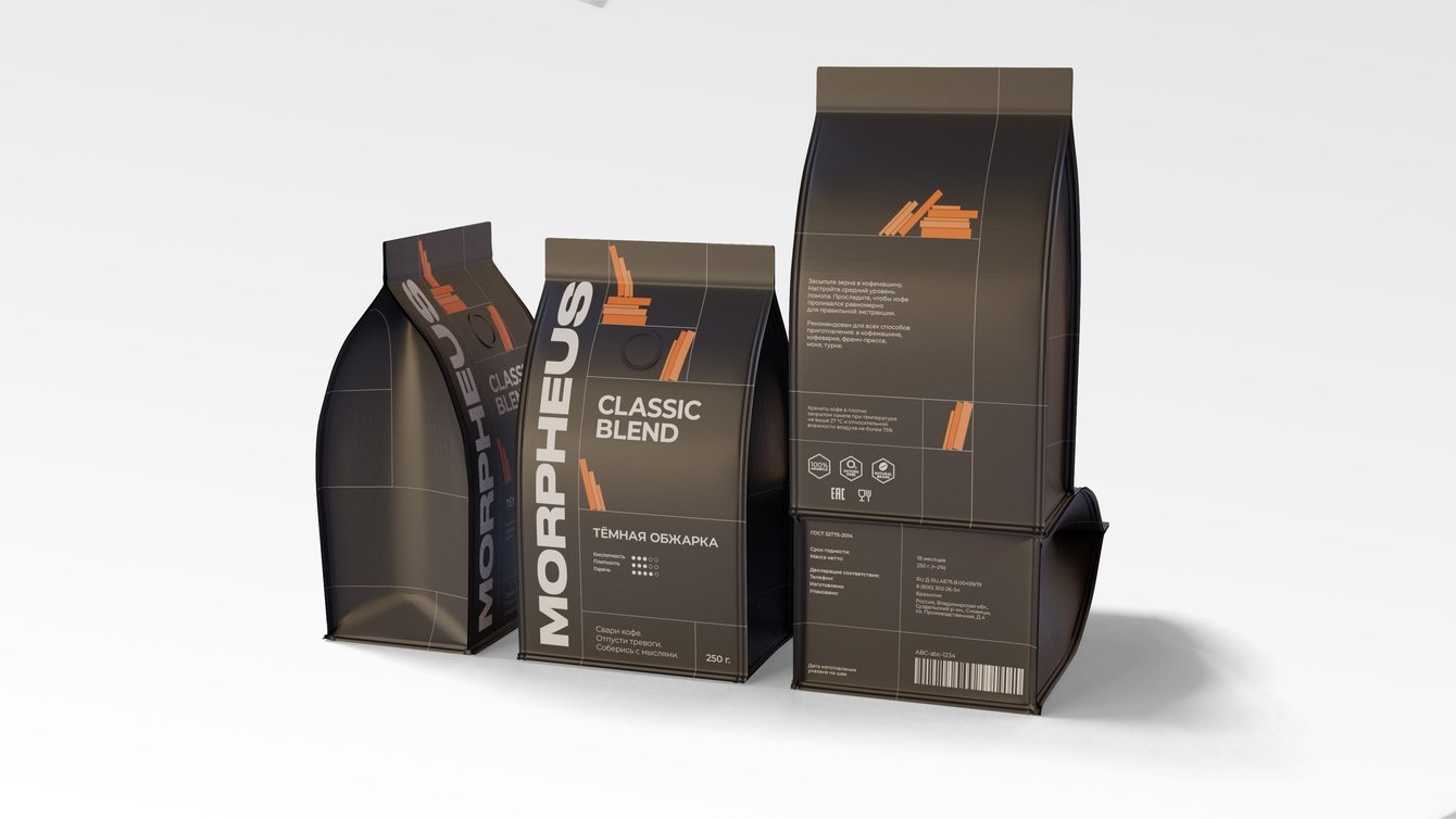 Получилось стильно, минималистично и при этом легко распознаваемо на маркетплейсах: покупатели узнают свой любимый кофе не только по названию, но и по визуалу упаковки, не проваливаясь в карточку товара. А тёмный цвет и крупный монолитный шрифт добавляют премиальности. Упаковку точно не захочется убрать в шкаф, она красиво впишется в любой интерьер кухни, если поставить её на стол рядом с кофемашиной.