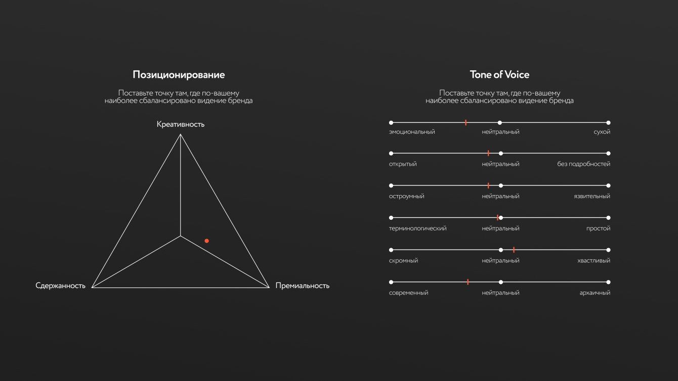 А также после созвона прислали небольшие «тесты». Кому-то сложно представлять в голове критерии, особенно в моменте разговора. А проще наглядно увидеть шкалу, немного подумать, «прочувствовать» и по ней понять, какие качества лучше отражают бренд.