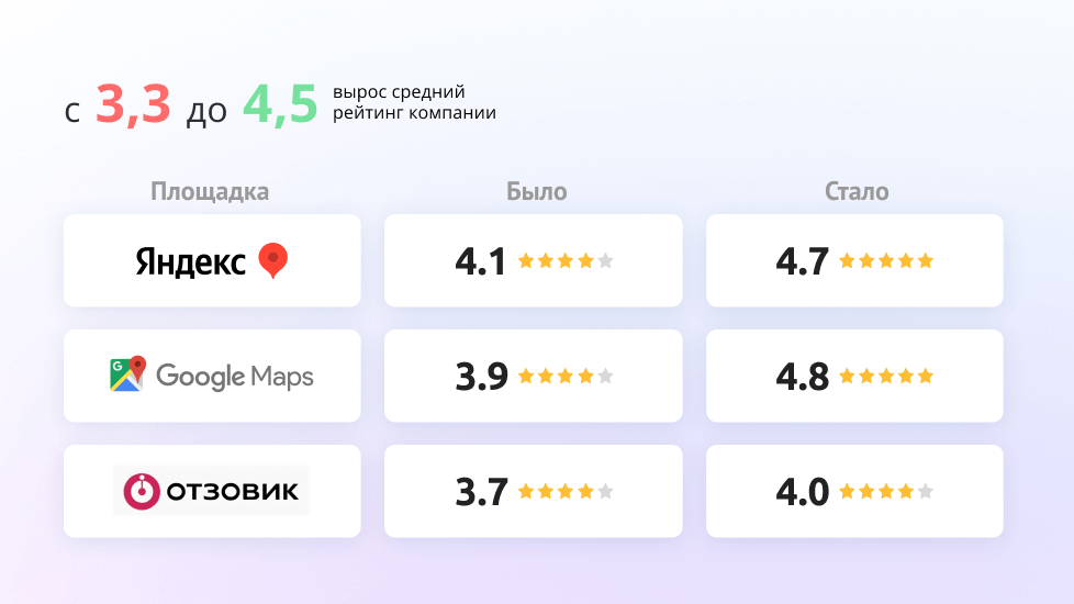 Таким образом компания получила не просто очищенную выдачу, а работающий инструмент для долгосрочного роста. И здесь важный вывод: репутация — это не красивые слова, а конкретные цифры и реальные деньги. Стоит поднять рейтинг хотя бы на один балл — и воронка продаж работает совсем по-другому.