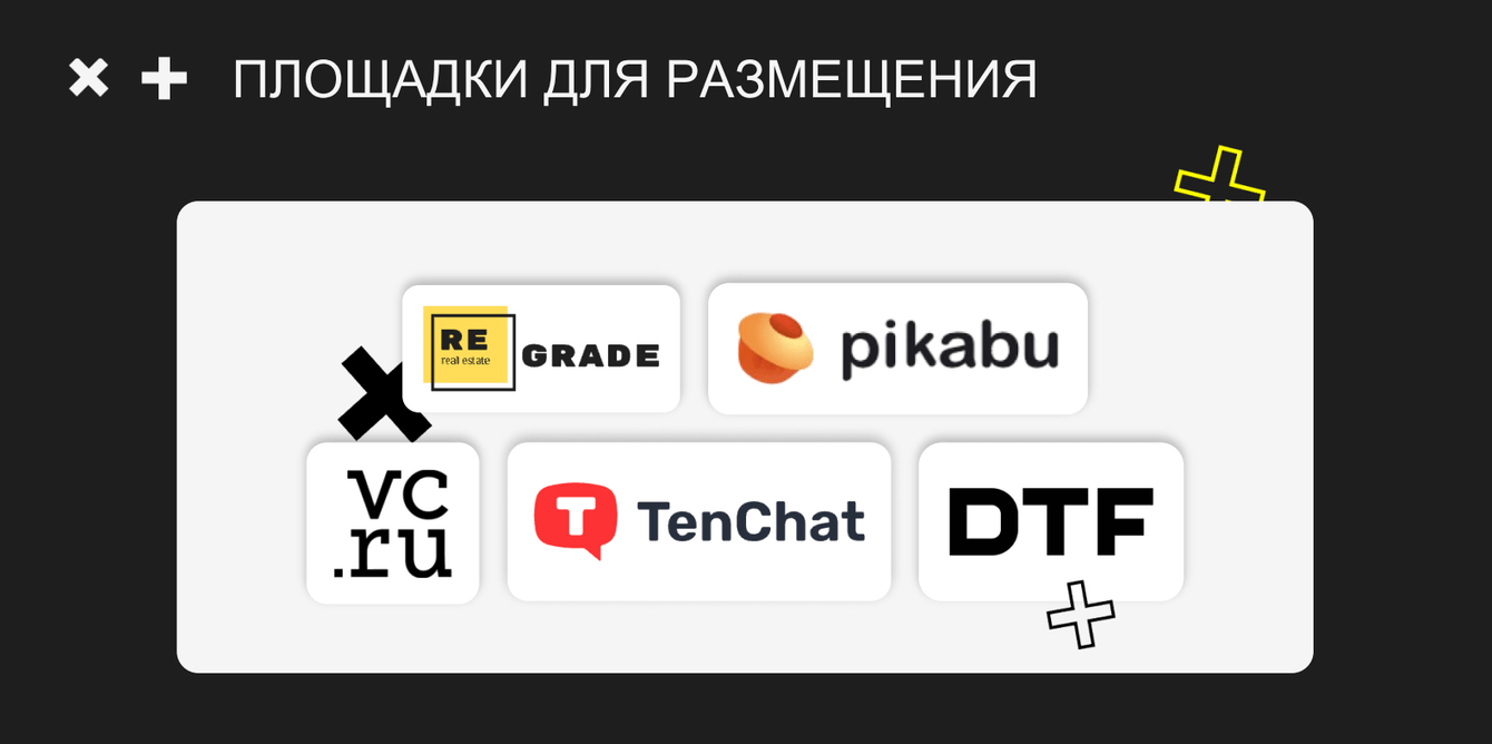 - Обеспечили дистрибуцию контента: публикации на Vc, Дзене, DTF, Pikabu, тематических площадках, промо в Telegram, VK, Tenchat. Кстати, именно Тенчат у нас сработал очень классно, после первой же публикации прочно заняли ТОП ИИ Яндекс с Алисой по жирному запросу “Лучшие застройщики Казани”