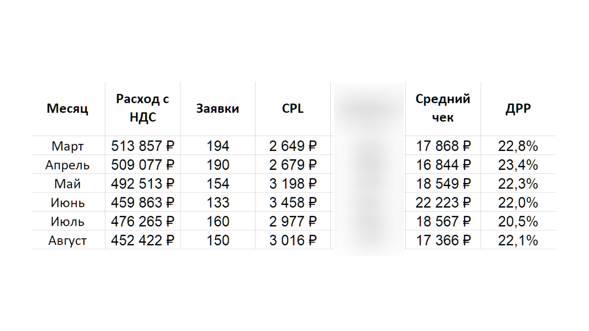 Мы сделали ставку на ремаркетинг, разделив аудиторию на новые, тёплые и горячие сегменты. Но даже здесь ремаркетинг выходит дорогим, так как аудитория обычно быстро принимает решение о покупке, но совершает повторные покупки за короткий срок не часто.