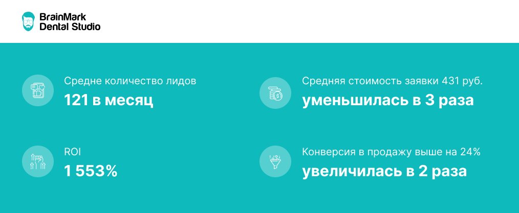 Клиентом выступила стоматологическая клиника BrainMark Dental Studio, которая обратилась с задачей повысить поток целевых лидов и укрепить позиции на высококонкурентном рынке стоматологических услуг.