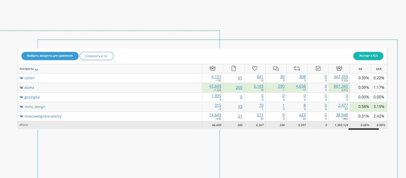 Прежде чем приступать к разработке стратегии, мы изучили конкурентов и представленные на рынке продукты digital-сферы. Первое, что мы обнаружили — digital-агентств, которые ведут и развивают свои сообщества, практически нет во ВКонтакте. Поэтому мы провели сравнительный анализ сообществ, включая группы со схожей тематикой, таких как: eLama, Callibri.
