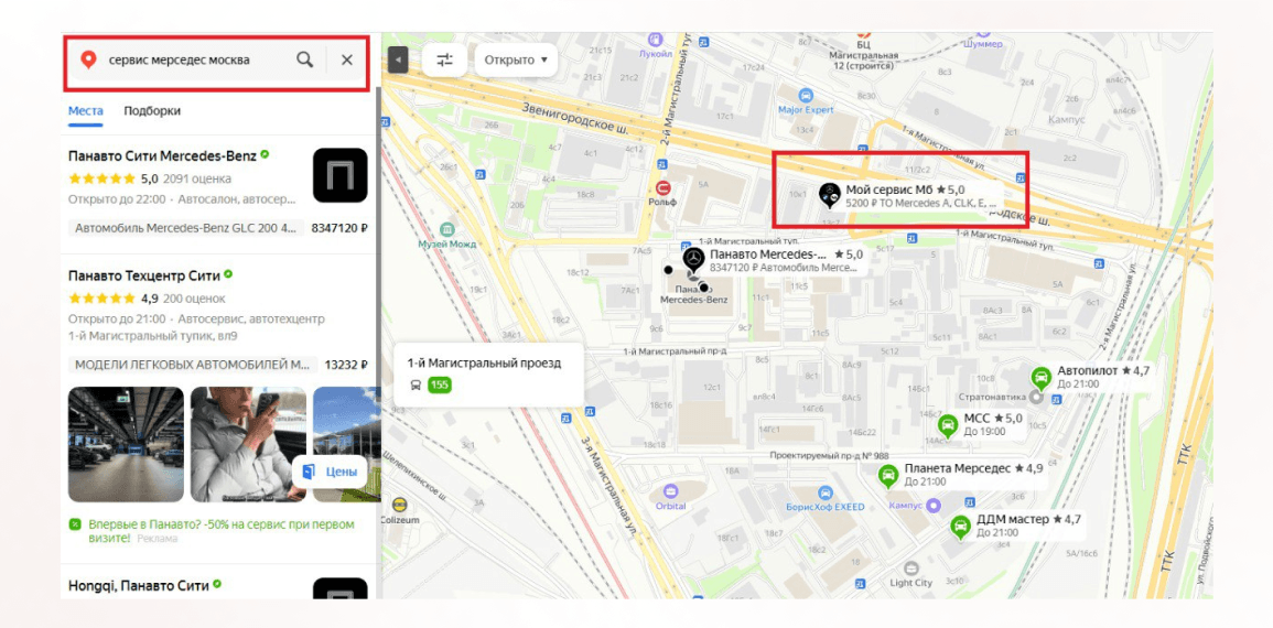 Главной задачей проекта было увеличение видимости «Мой Сервис» на Яндекс.Картах по релевантным поисковым запросам. Важно, чтобы «Мой Сервис» появлялся в топе результатов поиска.