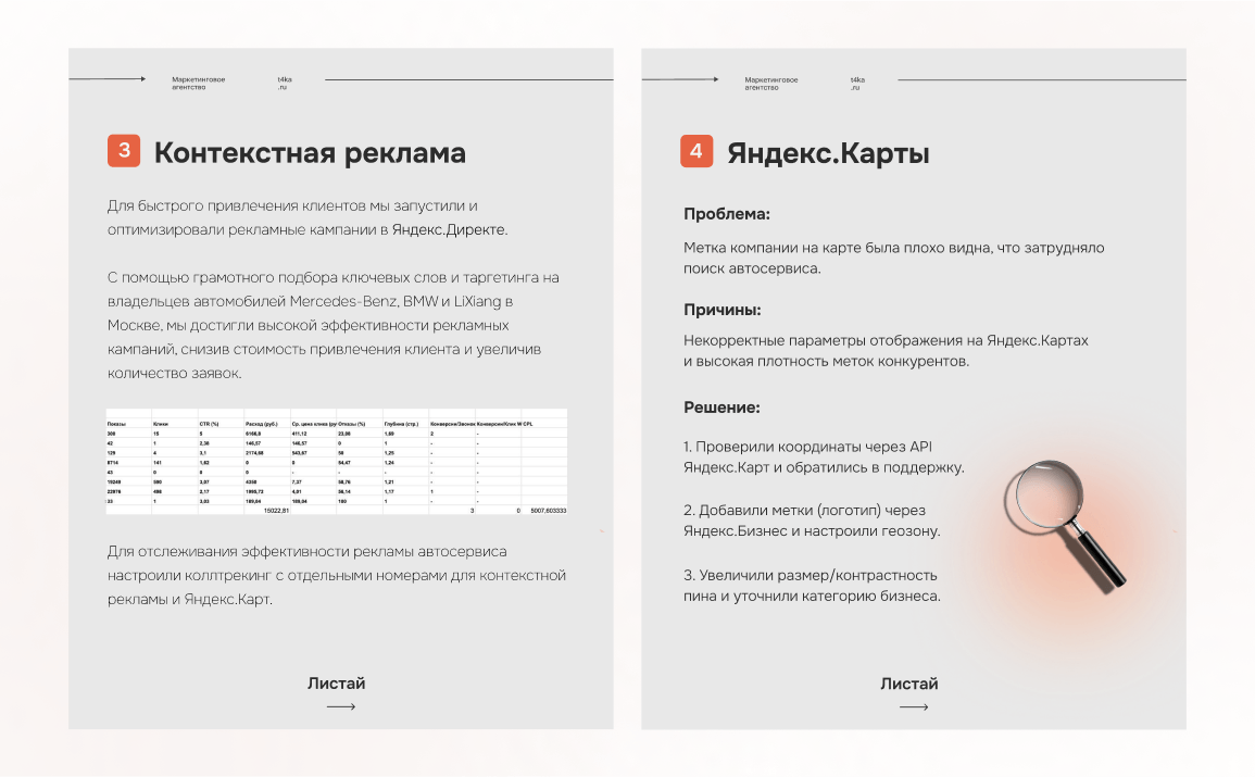 Данный кейс наглядно демонстрирует эффективность комплексного подхода к продвижению сети автосервисов для премиальных автомобилей. Сочетание таргетированной рекламы ВКонтакте, контекстной рекламы и продвижения на Яндекс.Картах позволило достичь значительных результатов и привлечь целевую аудиторию, заинтересованную в высококачественном обслуживании своих автомобилей