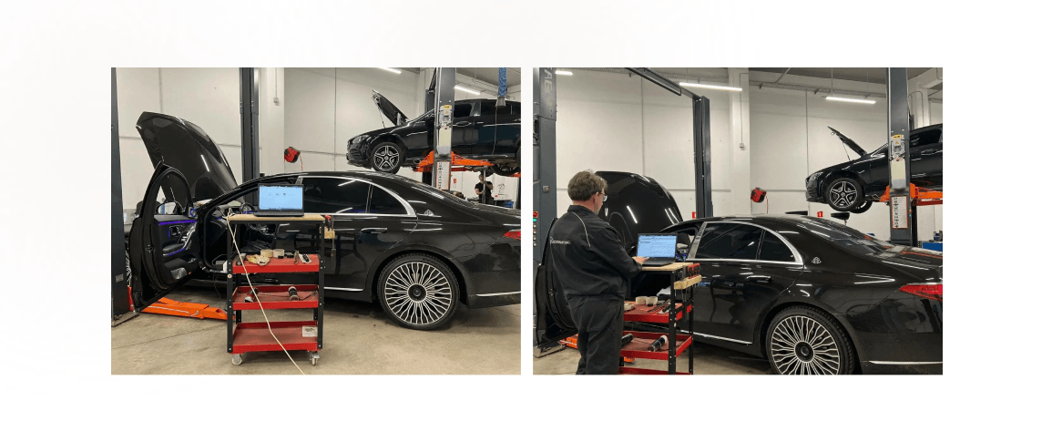 В качестве креативов использовали фото процесса сервисных работ, чтобы сделать акцент на используемом современном оборудование и опыте работы с авто премиум класса.