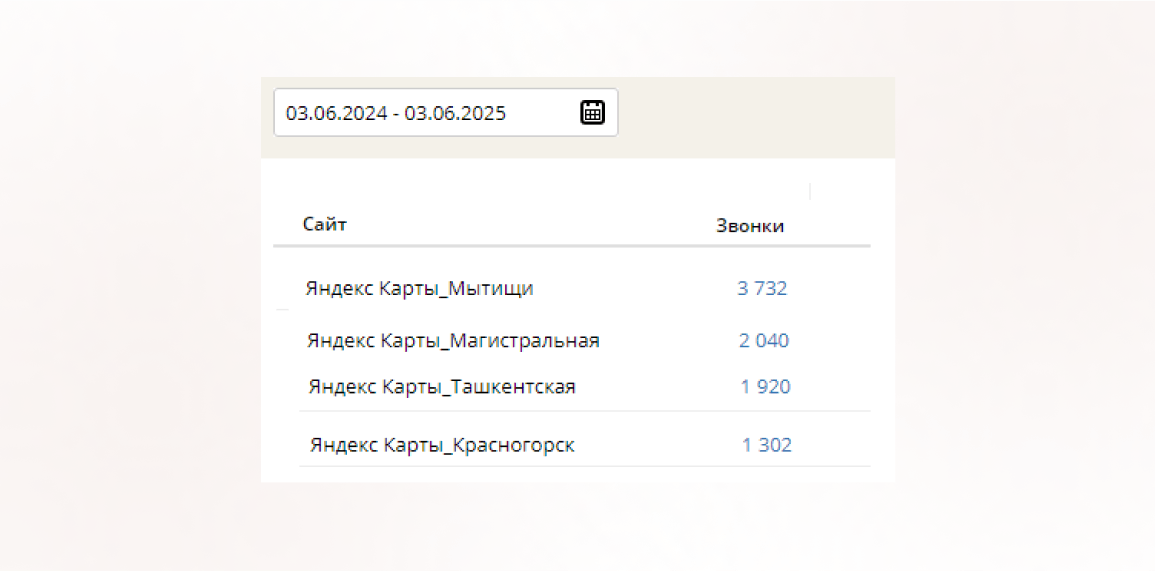 Мы подключили колтрекинг к сайту автосервиса и настроили отдельную подмену номеров для каждого рекламного канала: контекстная реклама и Яндекс.Карты. Это позволило нам точно определить, какой источник генерирует больше всего целевых звонков. Анализируя данные коллтрекинга, мы смогли оптимизировать рекламные кампании, скорректировать таргетинг в ВКонтакте, улучшить объявления в контекстной рекламе и повысить позиции автосервиса в Яндекс.Картах.