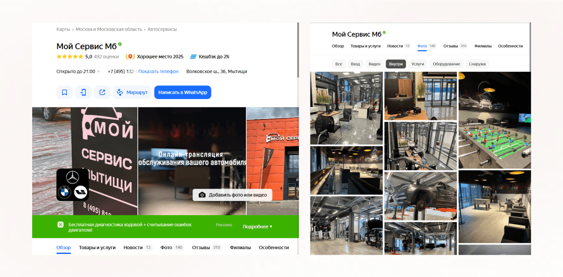 Мы разместили компанию «Мой Сервис» на Яндекс.Картах, настроили и оптимизировали витрину товаров и услуг.