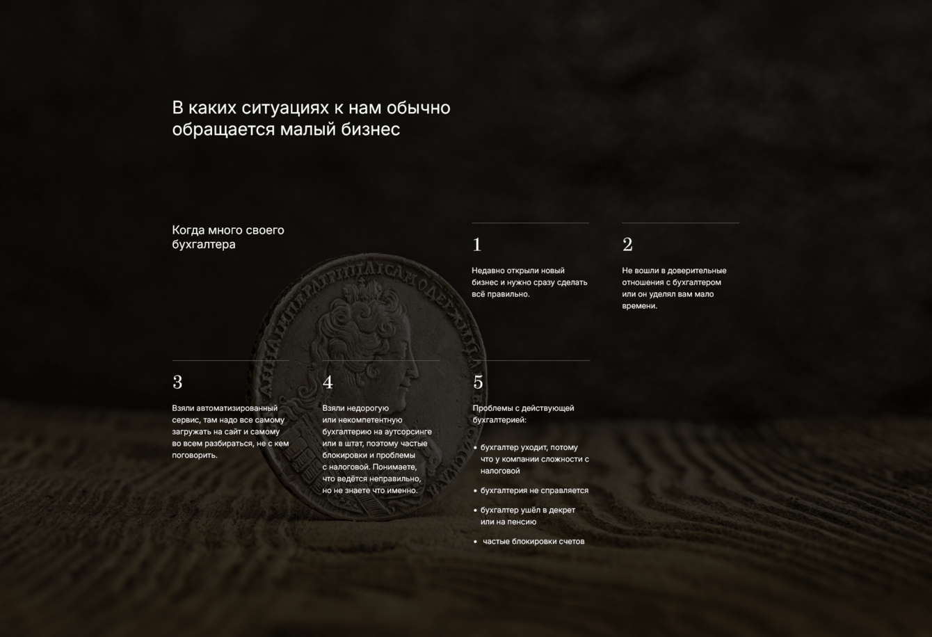 Когда у меня заказывали этот сайт, заказчик сказал: про налоги может писать только человек, который разбирается в налогах. Нам уже пытались сделать такой сайт и текст копирайтера совершенно не понравился. Он безграмотный с точки зрения бухгалтерии. Это в корне неправильный подход.