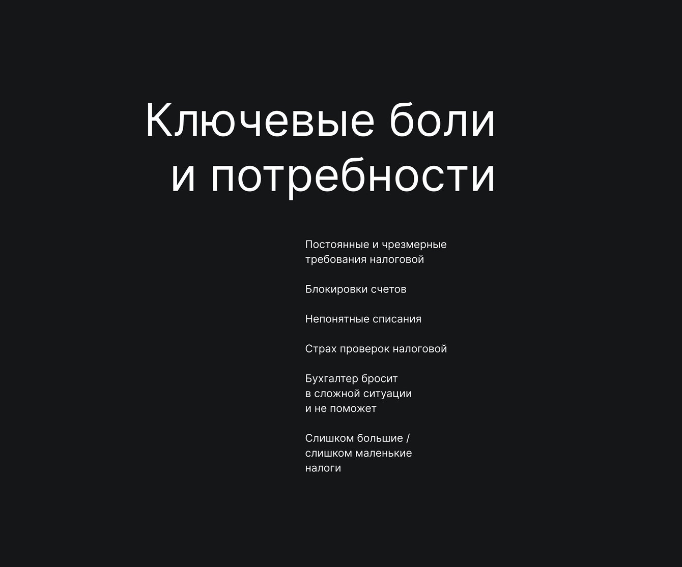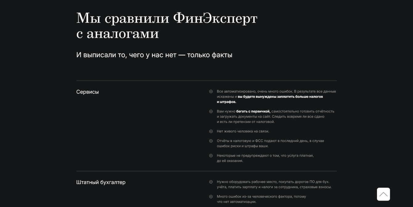 Например, еще в нише бухгалтерии есть такая боль, что с клиентами говорят на непонятном бухгалтерском. Поэтому клиентам ничего не понятно. И я сделала вот такой блок.